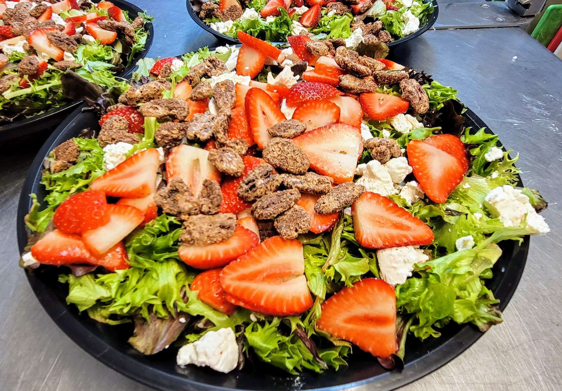 with goat cheese, craisins, praline pecans & poppyseed dressing.